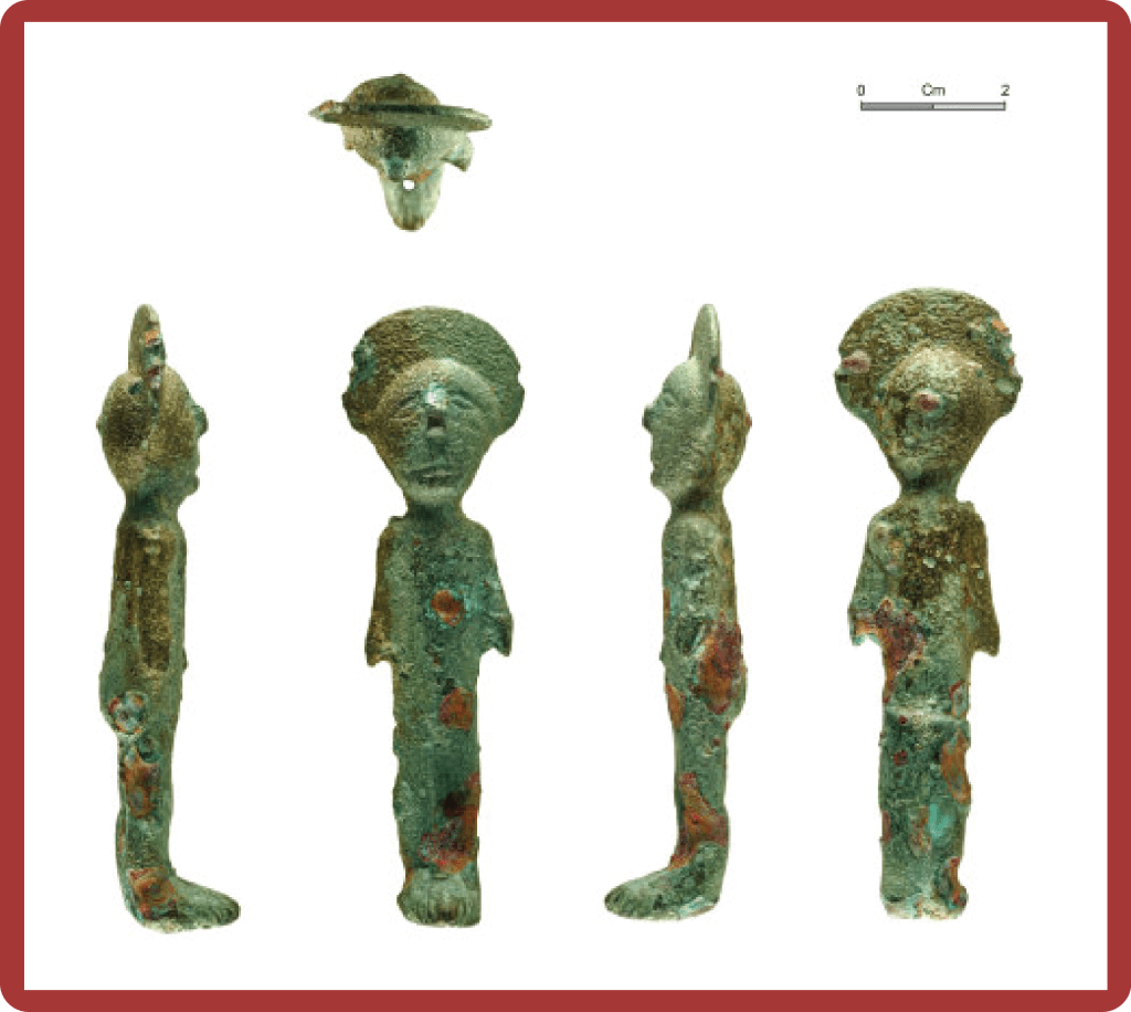 This figurine was not the only one found in Culver Hole Cave – a second female figurine was found by children in the 1930’s. This one is in the Amgueddfa Cymru collections. Details can be found at https://amgueddfa.cymru/casgliadau/arlein/object/9d9fe376-c7e0-3f0a-8f84-f56b9d5a9b96/Roman-copper-alloy-figurine/?field0=string&value0=berain&field1=with_images&value1=on&page=43&index=505